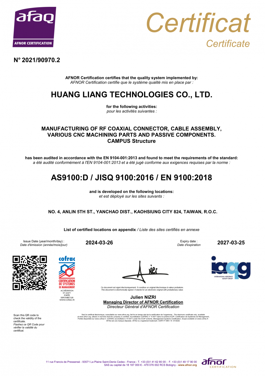 AS9100:D / JISQ 9100:2016 / EN 9100:2018